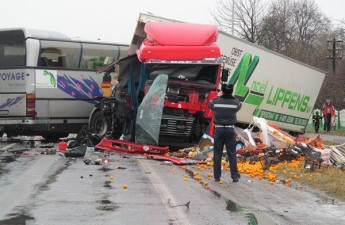 У селі Звірів Ківерцівського району зіткнулися рейсовий автобус і вантажівка