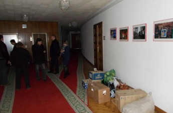 Волонтери складують продукти для АТО в приміщенні ОДА