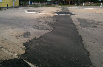 Асфальт, покладений два тижні тому на мікрорайоні Шахтарському у Нововолинську, провалився