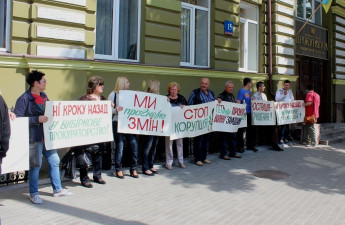 «Ганьба прокурорам!», «Геть корупціонерів з прокуратурі!» - такі гасла викрикували під стінами прокуратури області підприємці Завокзального ринку, які обурюються діями прокуратури. За півтори години протесту до них так і не вийшли стражі закону, попри обіцянки
