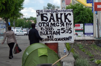 У самому центрі Ковеля чоловік середнього віку влаштував пікет біля одного з комерційних банків