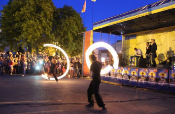Файєр-шоу показали на головній площі Луцька. «Вогняні» леді та «палаючі» чоловіки підкорювали «рудого півня»
