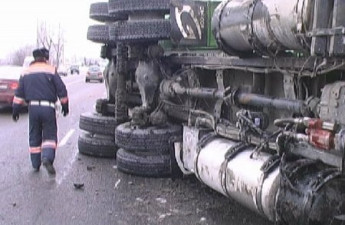 У результаті перевертання вантажівки водій і пасажир із тілесними ушкодженнями госпіталізовані у медичний заклад