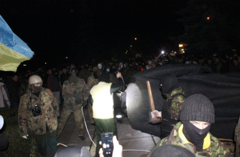 Активісти Правого сектору розгромили офіс Партії Регіонів та комуністів у Маневичах
