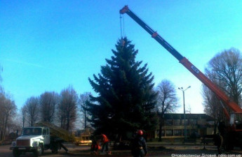 Зламана вітром 10-метрова ялинка стала окрасою міста на Волині