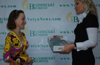 Голова Волинської обласної організації Європейської партії України Олена Голєва авторові найкращого питання, яке було поставлене їй під час чату на «ВН», вручила приз