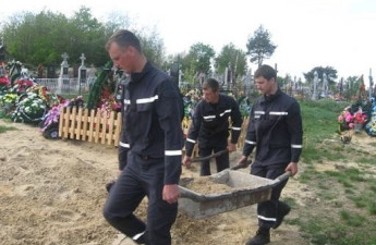 У Камені-Каширському у вільний від чергування час рятувальники місцевої СДПЧ-8 допомагали працівникам комунальних підприємств в упорядкуванні місць поховання ветеранів та території міського кладовища