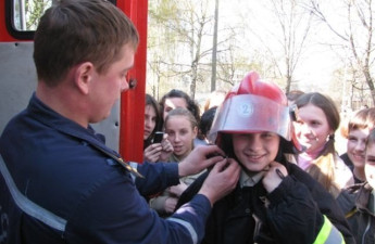 Рятувальники дозволяють дітям приміряти каску пожежного. ФОТО
