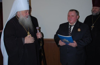 Митрополит Луцький і Волинський Нифонт від імені предстоятеля Української православної церкви, Митрополита Київського і всієї України блаженнішого Володимира вручив прокурору області Андрію Гілю орден Почаївської ікони Божої Матері