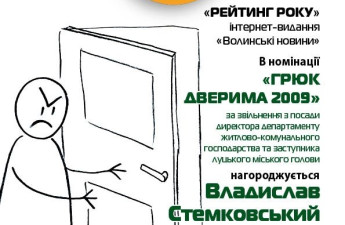 В номинации «Грохот дверью 2009» победил Владислав Стемковский, который в августе освободился от должности директора департамента жилищно-коммунального хозяйства и заместителя луцкого городского главы.