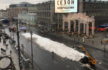 Наближається Новий Рік, а погода зовсім не зимова. Влада Москви взялася за вирішення цієї проблеми й завезла у центр кілька вантажівок снігу, який розклали по узбіччях вулиць