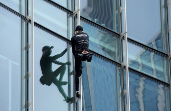 57-річний французький скелелаз Ален Робер, якого прозвали «людиною-павуком», піднявся на хмарочос Skyper у Франкфурті-на-Майні, після чого його затримала поліція.