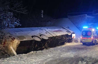 Автобус перекинувся близько 4:00 ранку під час повороту. У ньому на момент аварії перебували 59 громадян України та двоє водіїв.