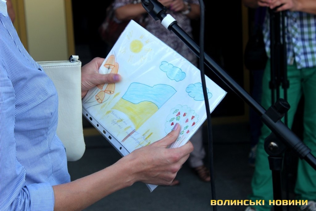 Добровольцям передала дитячі малюнки одна із присутніх під час зустрічі лучанок. Ігор Лапін подякував за подарунок та зауважив, що такі малюнки є у кожного бійця над ліжком, тому айдарівці знають, за що воюють.