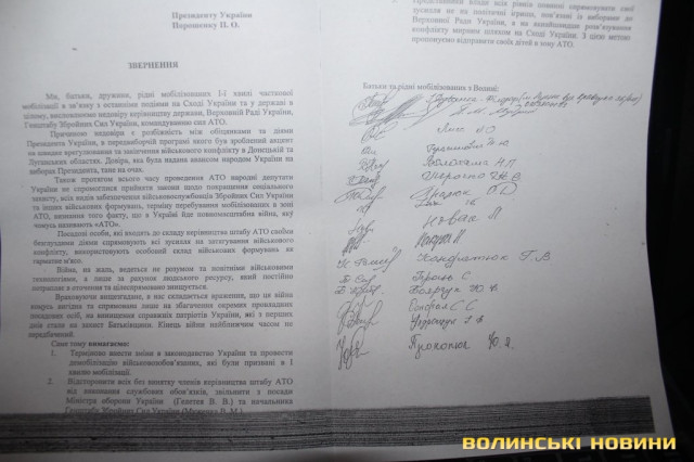 Вимоги здійснити ротацію військових з 51-ї ОМБ та відсторонити від посад керівництво АТО висунули батьки військовослужбовців-волинян.