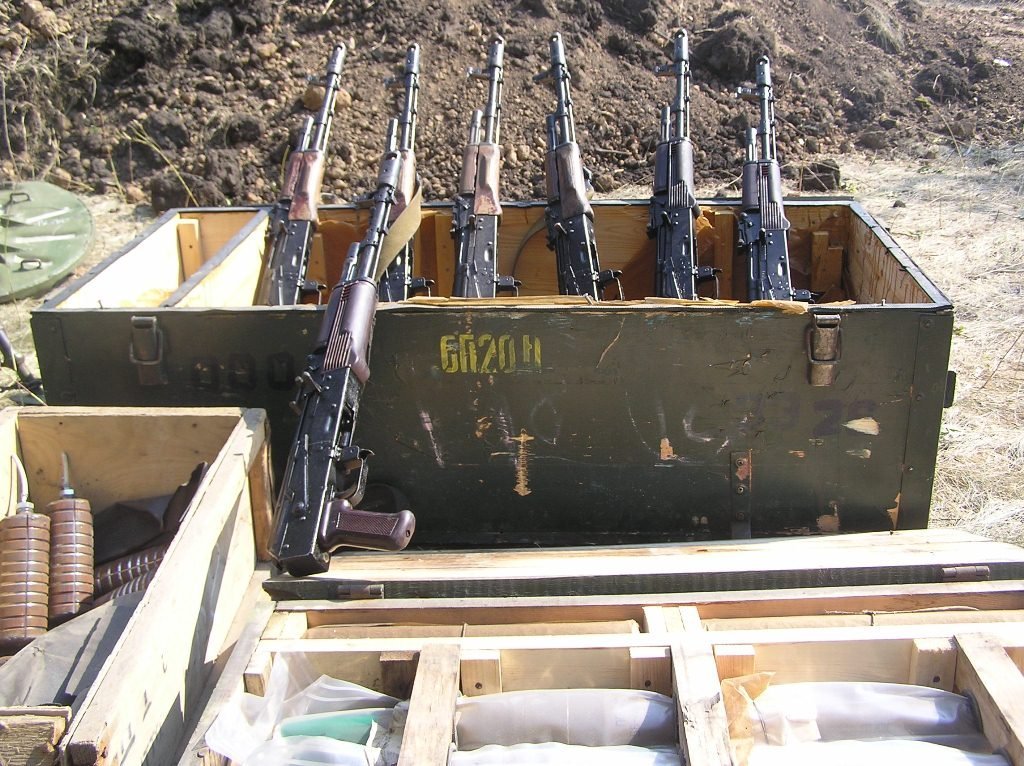 «Це автомати калібру 7.62 АК-74, АКС-74, що, як видно, брали участь в бойових діях, – розповідає начальник служби ракетно-артилерійського озброєння оперативного командування “Південь” полковник Олег Сніжко, – також є АК-74 в змазці, які були закладені в обладнану схованку». Також, з його слів, вилучили гранати до гранатометів РПГ-7 та 82-міліметровий гранатомет, який можна перевозити як у вантажівках, так і в автомобілях типу “УАЗ” чи “Газель”. Окрім того, бійці вилучили гвинтівки СКС, які, як видно, брали участь в бойових діях та чимало патронів до стрілецької зброї. Всю зброю передадуть на склади Збройних Сил України для утилізації.