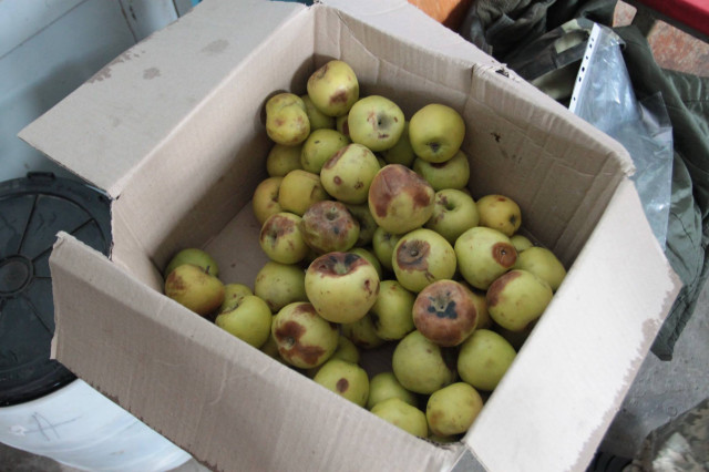 М’ясо з серії пожуй та передай товаришу. По вигляду та по штампу старше за мене (краще б привезли тушонку...). Яблука – гниль, і на весь підрозділ такої гнилі аж 9 кг.