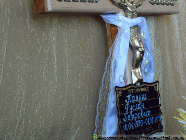 Труну на руках несли до Свято-Покровської церкви вулицями села. Скорбота і жаль переповнювали серця усіх, хто брав участь у церемонії поховання. Ніякими словами не передати біль втрати сина, батька, чоловіка. Руслану Калушу восени виповнилося б 35 років. «Ховати своїх дітей і онуків»,- такими словами зверталась безутішна мати до усіх тих, хто затіяв війну і убив її сина.
