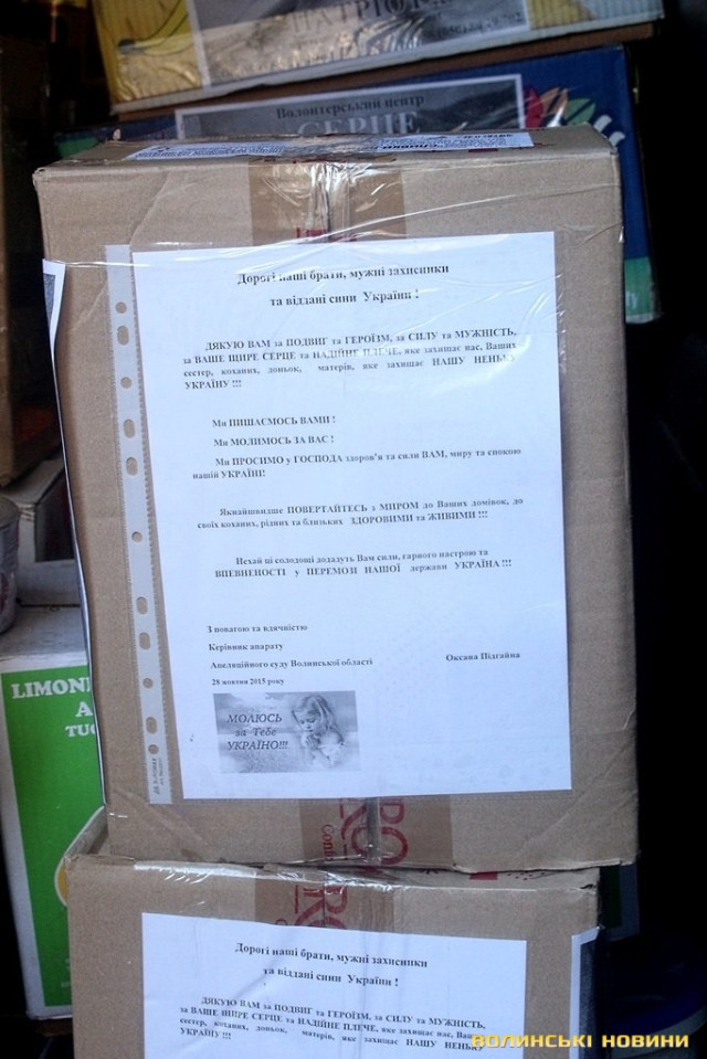 Як зауважив один із засновників волонтерського центру, ректор Волинського інституту післядипломної педагогічної освіти Петро Олешко, цього разу зібрати усе необхідне для воїнів допомагали працівники апеляційного суду, підприємці Олександр Омельчук, Сергій Мосійчук, Сергій Забіяка і просто небайдужі громадяни.