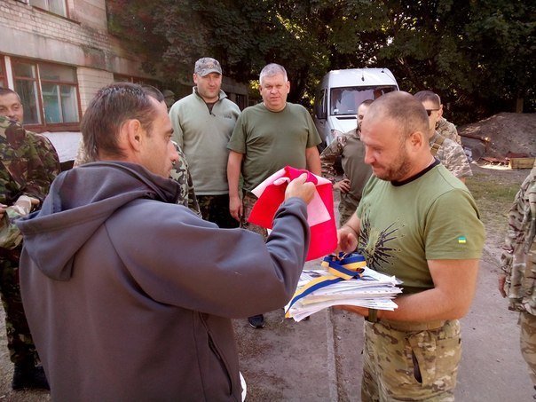 На базі ДУКу волинські волонтери абсолютно випадково зустріли лідера «Правого сектора» Дмитра Яроша. Автомайданівці подарували Дмитру прапор Волині - як символ єдності і неподільності українських земель та свідчення підтримки бійців патріотами Волині. "Було б дуже важко, якби не такі люди, як ви! З такими тилами, ми переможемо!", - сказав Дмитро Ярош, дякуючи за небайдужість усім волинянам.