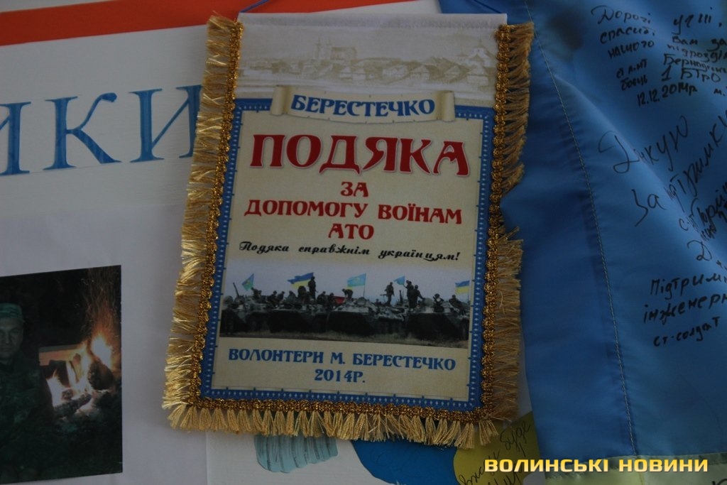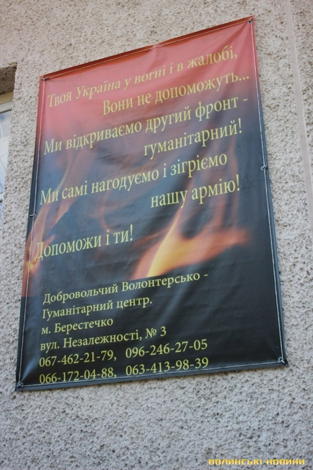 «В нас є бажання допомагати, але немає належної кількості фінансів, зокрема, поки не можемо дозволити собі профінансувати ремонт спецтранспорту для бійців. Ми просимо більш крупні фірми допомогти, хто чим може, але люди дуже виснажились війною. І все ж для мене то – звичайні будні. Але я хочу донести до людей, що війна все ще триває. І серце обливається кров’ю через те, що звичайні громадяни Берестечка вбили собі у голову, що це їх не стосується. Села допомагають, допомогу возять з-під самого Горохова. Чим зумовлена байдужість? Все просто! Якщо до оселі родини не прийшла мобілізаційна повістка, то людина й відхрещується від подій на сході», – обурюється керівник волонтерського центру Валентин.Він зізнався, що часто волинські підприємці заявляють, мовляв, платять півтора відсотка податку до казни і їх більше нічого не хвилює, у той же час свої дітей від війни ховають за кордоном.