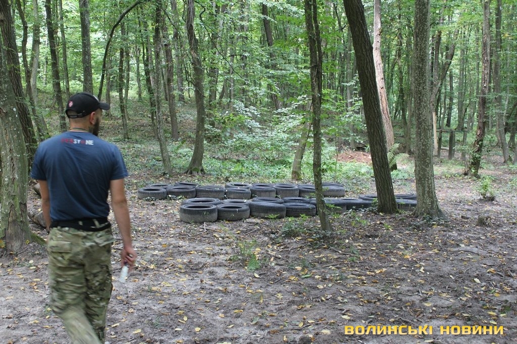 Добратись до неї вкрай не легко, з десяток кілометрів сільськими дорогами, потім ще декілька лісовими і ви на місці. Територію для тренувального табору разом з будівлею для проживання надала влада. Місцевим сюди зась – територія охороняється і пускають сюди лише своїх. Проте, зі слів побратима Матвія, який і організував екскурсію власкору Інформаційного агентства Волинські Новини, ніхто особливо сюди і не рветься, оскільки раз по раз тут лунають вибухи та постріли.