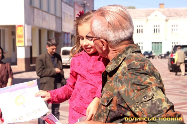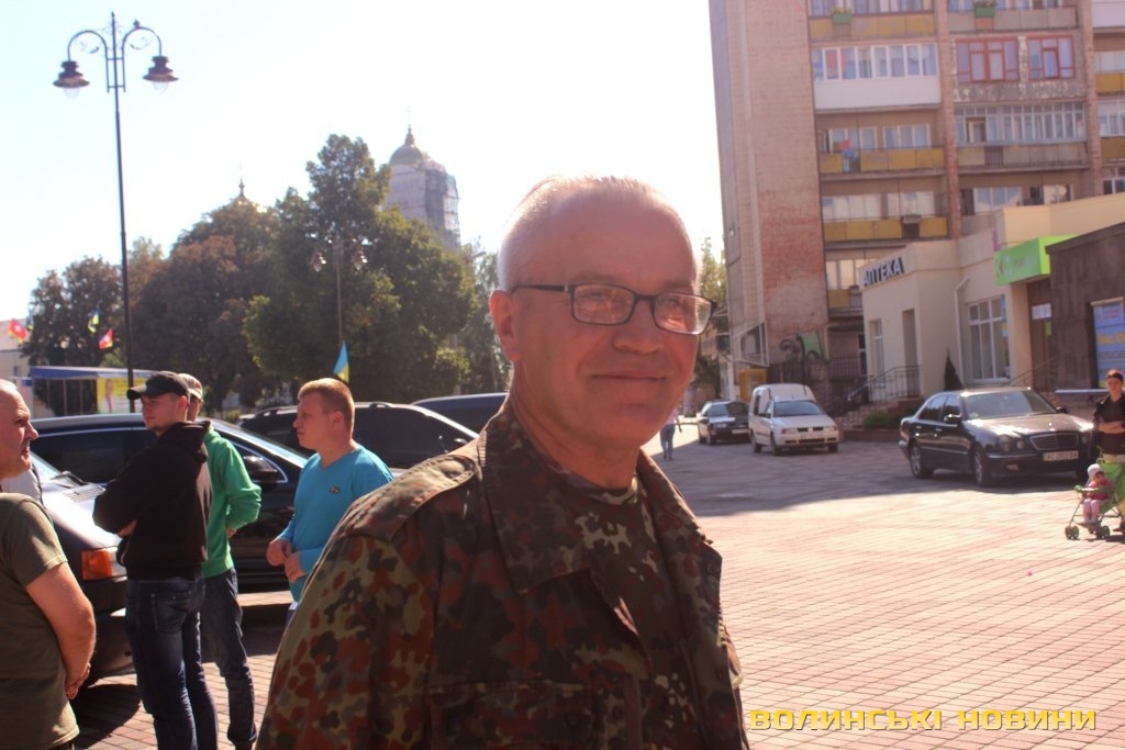 «Якщо не я, то хто? Мені довелося колись служити за часів СРСР, у репресивних військах – стройбаті на уранових рудниках. А зараз я їду заради того, щоб відстояти волю України, щоб дітям добре жилося. Я готовий брати участь у бойових операціях на Сході», - розповів доброволець, активіст Стрілецького козацького братства Анатолій Олексюк.