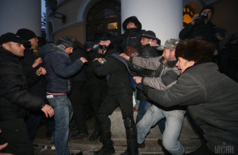 Близько 50 правоохоронців намагаються виштовхати частину учасників акції «Марш за імпічмент», яким вдалося прорватися частково всередину Жовтневого палацу