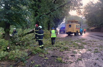 Тривають аварійно-рятувальні роботи в Луцьку на вулиці Зоряній. Там на два легкові автомобілі упав ясен, рятувальники його розкряжовують та вивільняють транспортні засоби.