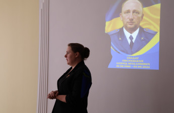Державну нагороду вручили дружині загиблого Ярославі Сосницькій, доценту кафедри економічної та соціальної географії ВНУ імені Лесі Українки, та маленьким синам.