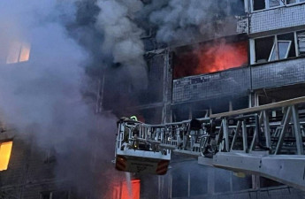 У Шевченківському районі Києва уламки БПЛА влучили у верхні поверхи пʼятиповерхового житлового будинку. Виникли пожежі на третьому і п’ятому поверхах. Займання ліквідували, виявили тіла двох людей.
