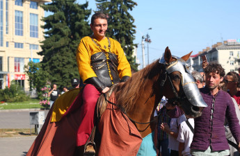 Урочиста хода за участі князя Вітовта, його дружини Юліани Гольшанської, лицарів, придворних артистів, танцівників, співаків, акторів із кінного театру та всіх охочих містян пройшла центральними вулиц…