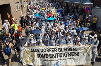 Тисячі людей приєдналися до кліматичного протесту у західному німецькому селі Хохнеукірх поблизу однієї з найбільших вугільних шахт країни.