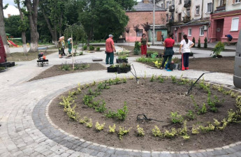 Сквер, який облаштували на місці колишнього квіткового ринку у центрі Луцька, озеленюють. Там уже почали висаджувати квіти та зелень