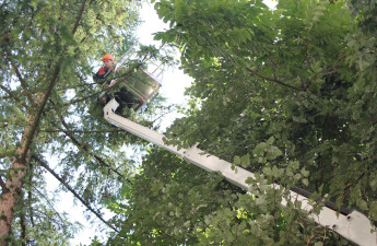 Луцькі електромонтери допомогли зняти кота з багатометрового дерева