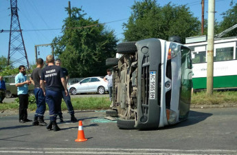 У Луцьку біля заводу «Кромберг і Шуберт» перевернувся автомобіль марки Renault Trafic.