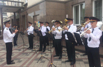 З нагоди 25-ї річниці створення військової частини 1141 Національної гвардії України у центрі Луцька виступає військовий оркестр.