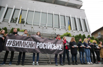 «Вимкни російське»: у Києві пікетували офіс телеканалу «Інтер»