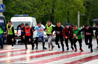 Дощ не став завадою для 228 бігунів, які взяли участь в легкоатлетичній естафеті, присвяченій сімдесят четвертій річниці перемоги над нацизмом у Другій світовій війні
