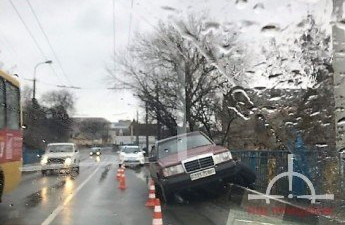 У Луцьку в результаті ДТП Mercedes опинився на відбійнику