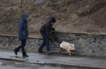 На Театральний майдан Луцька, де очікують на приїзд Петра Порошенка, привели уже другу за день свиню