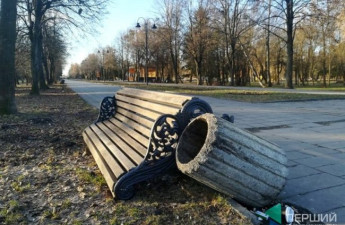 Сім важких лавок і бетонних смітників перевернули невідомі на центральній алеї у луцькому Центральному парку культури і відпочинку імені Лесі Українки
