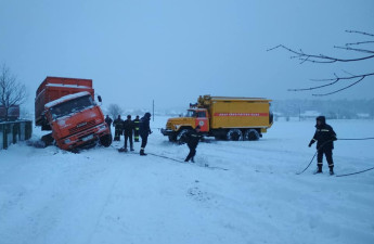 На Волині рятувальники витягнули із замету вантажівку з брикетами