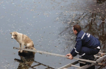 У селищі Ратне на Волині врятували собаку, який провалився під лід
