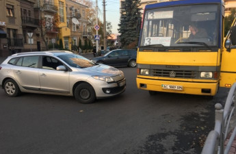 У центрі Луцька стався інцидент між водієм маршрутного таксі №3 та водієм "Рено".