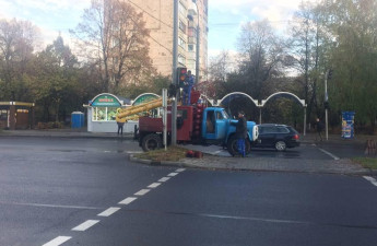 У Луцьку ремонтують світлофор, який знесла автівка. Фотофакт