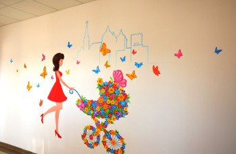 Яскраві мальви, ніжні кульбаби, барвисте різнотрав’я, над квітами літають бабки та птахи – волинські художники вдихнули життя у стіни перинатального центру, що його незабаром відкриють у Луцьку. Худож…