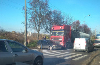 «Рено» зіткнулося з вантажівкою у Луцьку, затор в обидві сторони