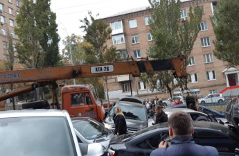 У центрі Києва автокран протаранив 10 авто: постраждали кілька людей