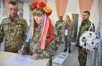 Військове весілля неподалік передової відгуляли напередодні Дня захисника України захисники з 14 окремої механізованої бригади.
